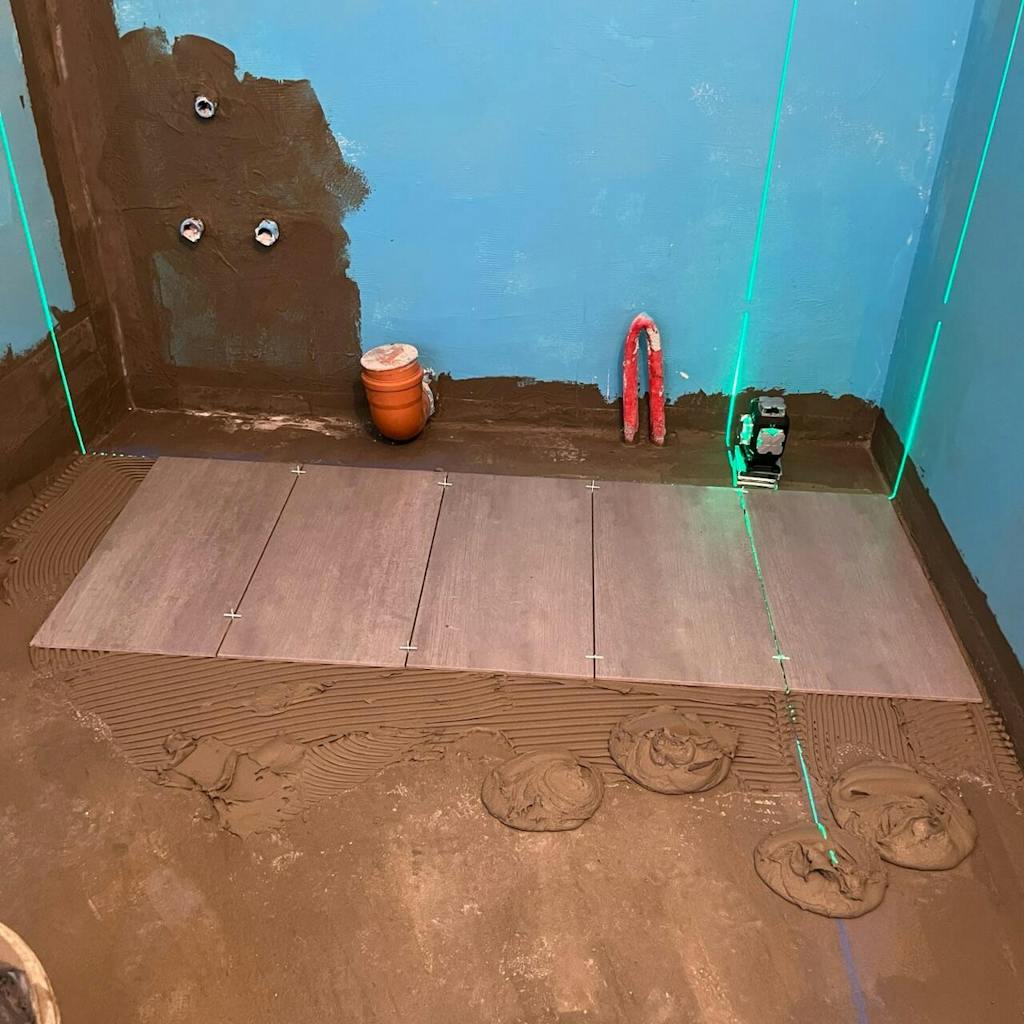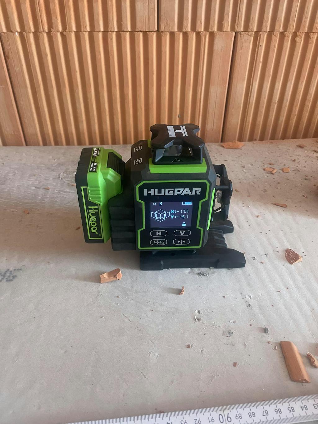 Der Laser ist ziemlich gut. Was ich gemerkt habe, ist, dass der Akku innerhalb von 3 Stunden leer war. Ich habe ihn wieder voll geladen, weil ich dachte, er wäre nicht komplett geladen. Er war aber trotzdem nach 3 Stunden leer. Ich bin Fliesenleger und ich brauche ständig mehr Zeit.